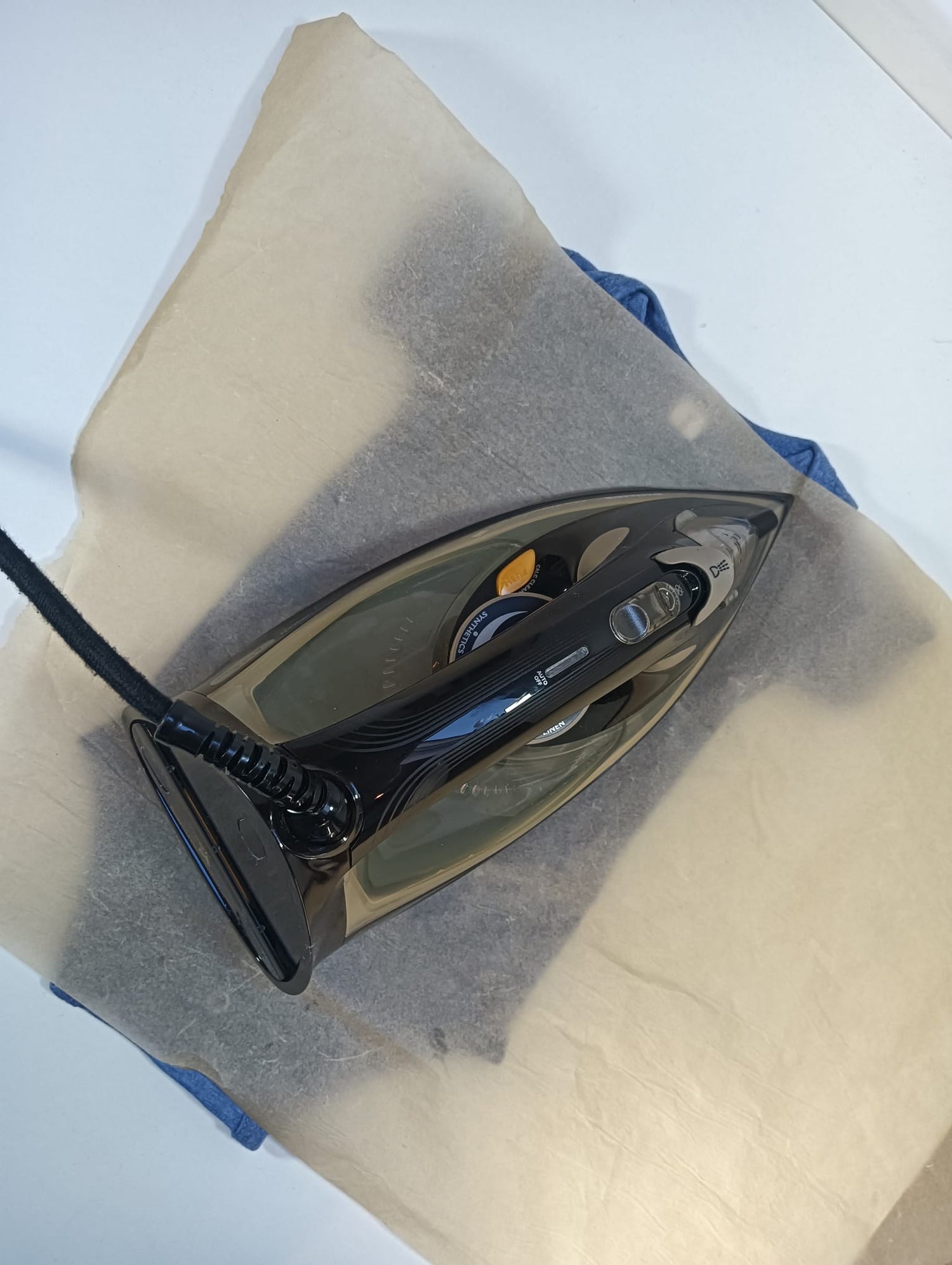 Druk stevig met het strijkijzer op één plek gedurende 10-15 seconden.