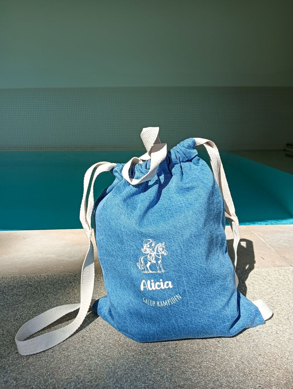 Gepersonaliseerd jeans turnzakje - per sport